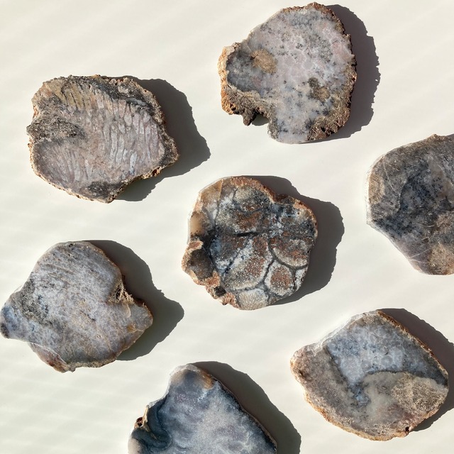 _ CORAL COASTER _ 海の宝石サンゴの化石を 大胆に切り出したコースター 半透明なブルー混じりのホワイト チャコールやブラウンなど 個体によって全く異なる 寒色系のシックなミックスカラーが特徴です 一つとして同じものはない 大自然が生み出した 多彩な表情がたのしめます アクセサリートレイにしたり 様々なディスプレイにお使いいただけます SIZE_約W12cm/H1cm前後 〔裏面に滑り止め付き〕 ////////////////////// 天然素材を使用している為 色・柄・形状・大きさ全てに個体差のある1点物です。 素材の特性として、表面の凹みやキズに見えるようなものがある場合がございます。 断面よりわずかに粉状の欠けが発生する場合がございます。 個体差をお選びいただく事はできません。 予めご了承くださいませ。 ////////////////////// 【 再入荷のお知らせについて 】 商品ページ内「♡お気に入り」登録をお願いいたします。再入荷後にお知らせが届きます。 誠に恐れ入りますが、メールでの再入荷連絡・入荷予定のご連絡は個別に差し上げておりません。 予めご了承くださいませ。