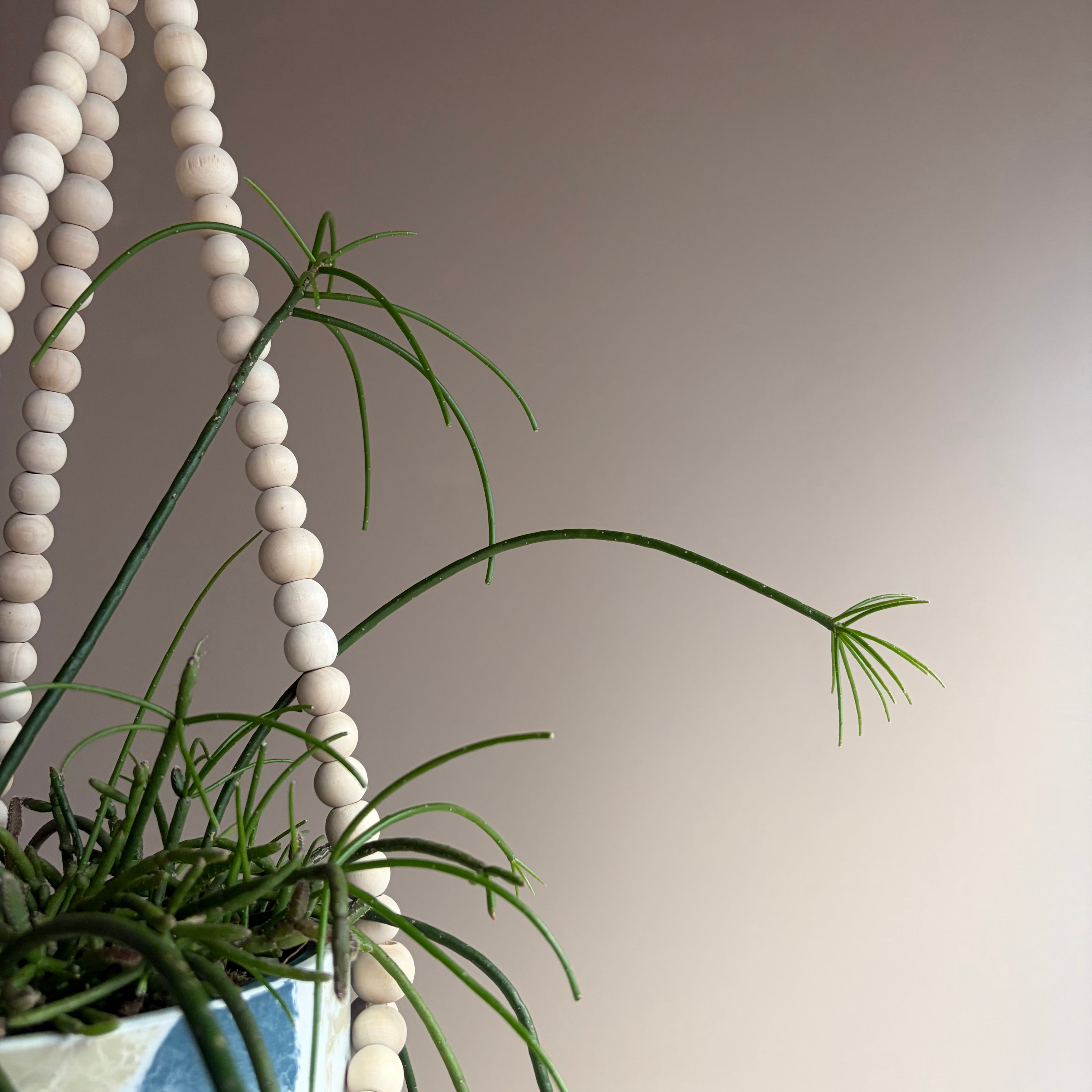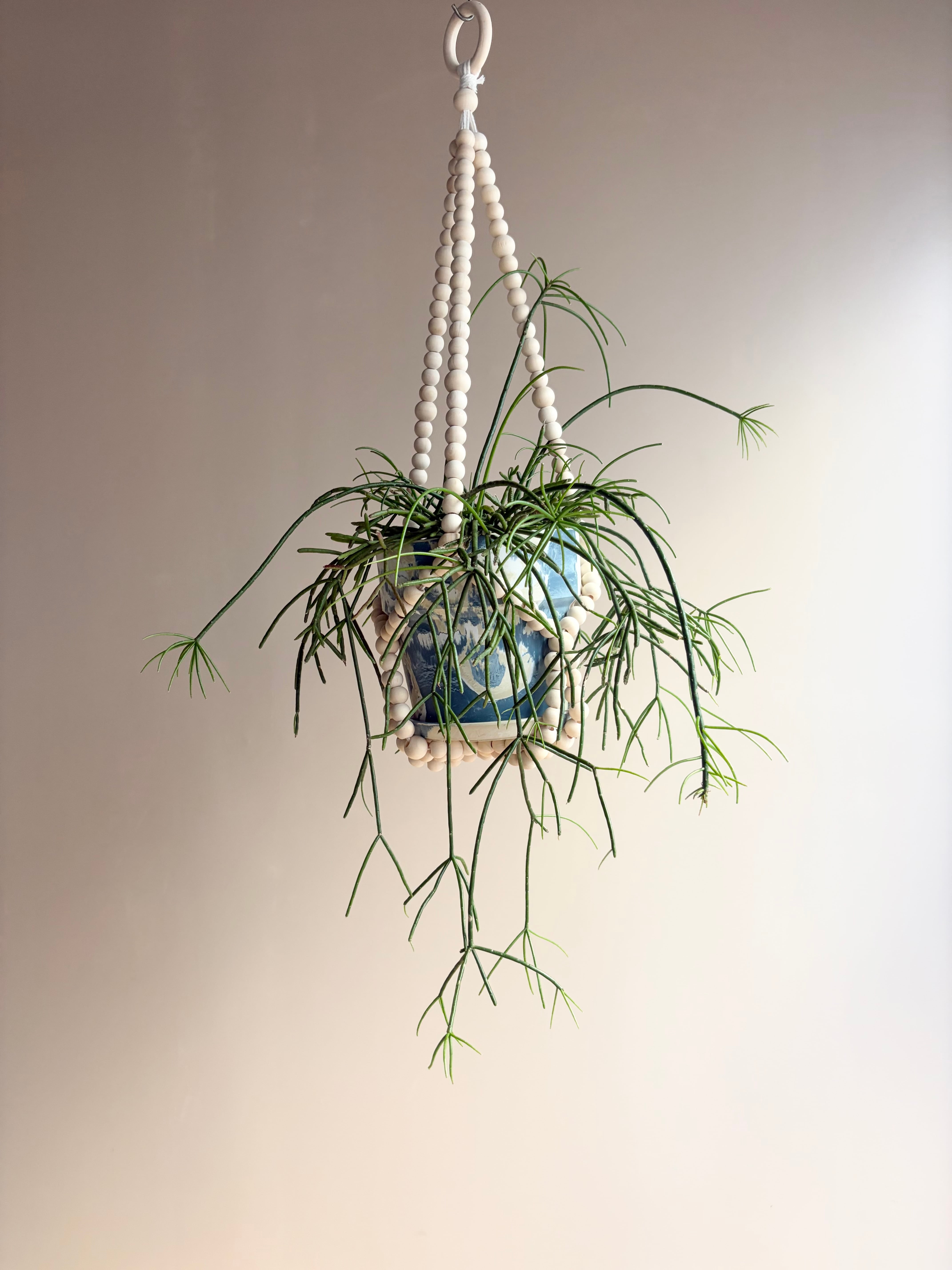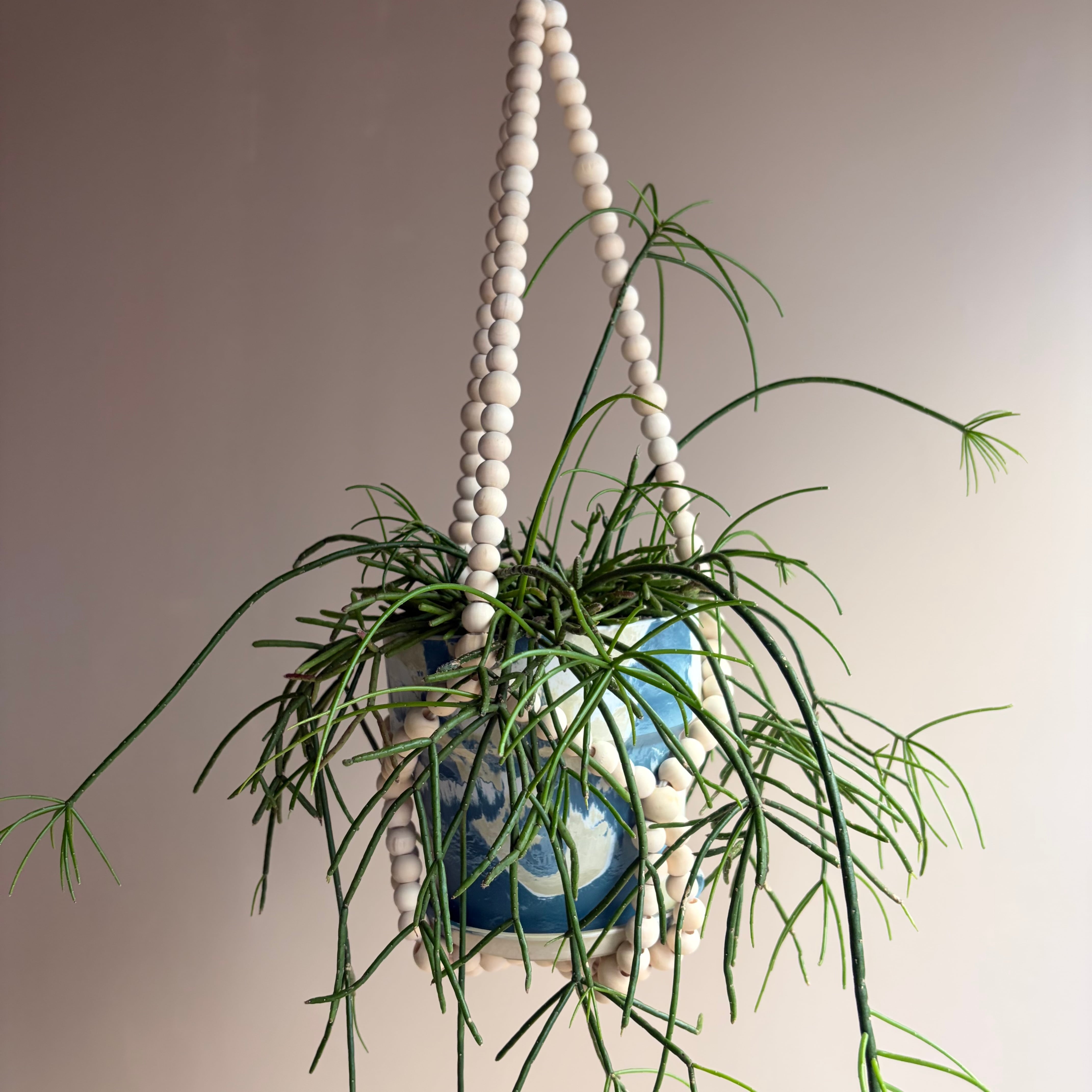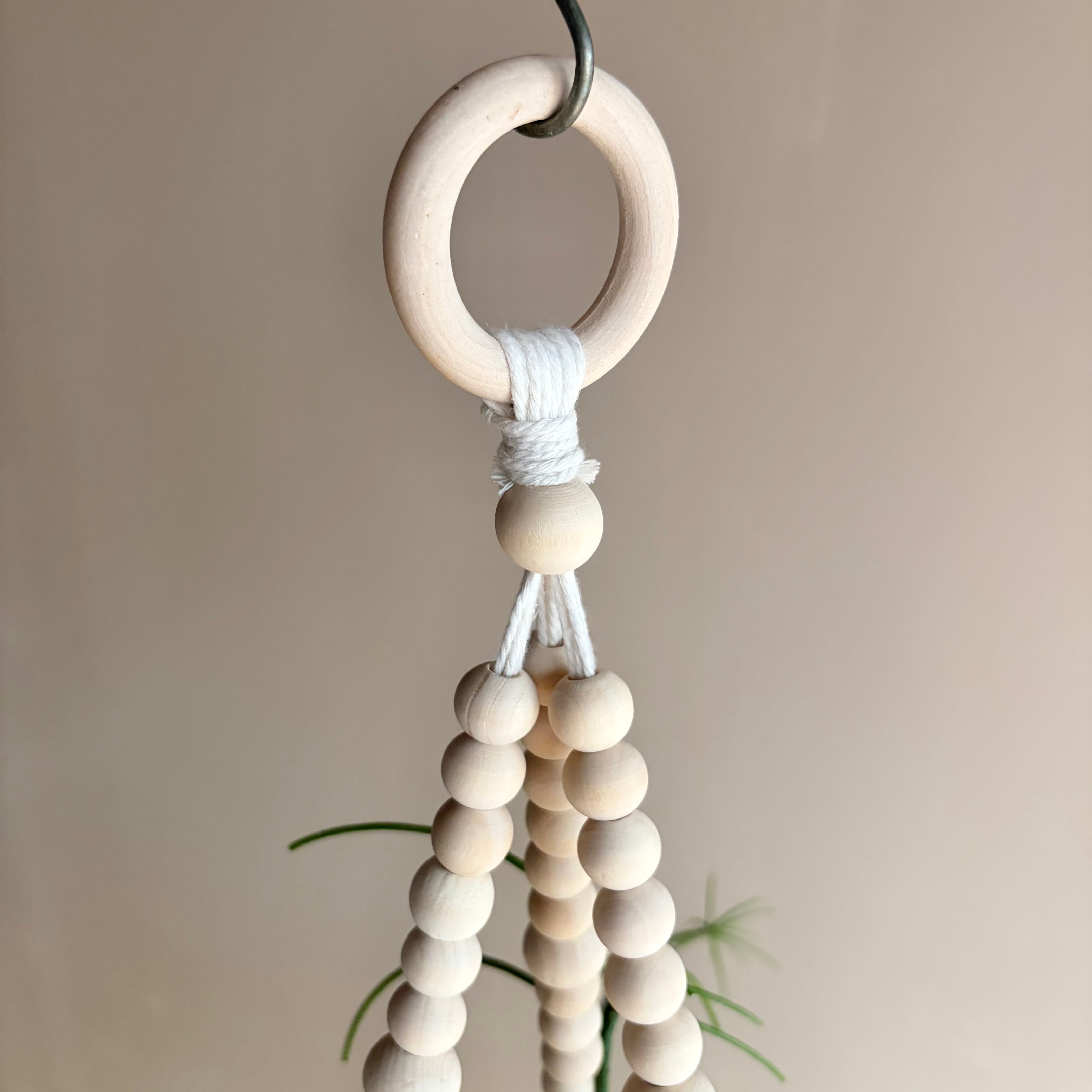 ウッドビーズのハンガーにマーブルカラーの鉢を合わせて
